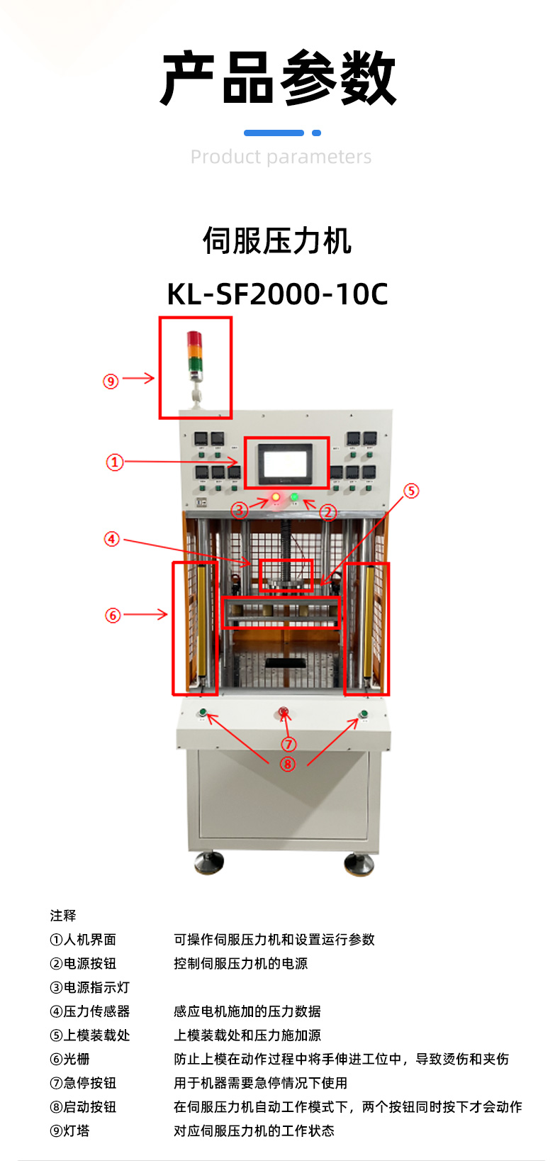 精密數控伺服電子壓力機簡稱伺服壓力機、電子壓力機,其工作原理是由伺服電機驅動H精度滾珠絲桿進行精密壓力裝配作業,全程實現壓裝力與壓入深度的閉環控制。另可配置加熱、實時壓力曲線顯示、多工位、掃碼、自動化等功能。